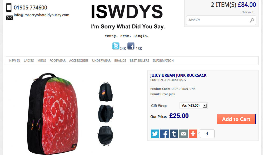 Complete with orange Urban Junk branding zip tags and Urban Junk branding on bottom right hand corner.